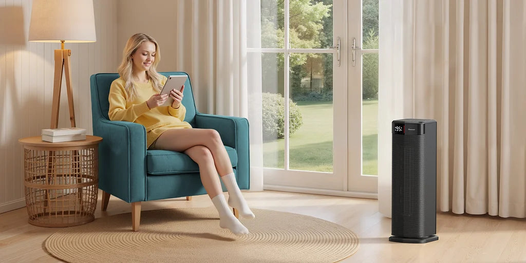 BREEZOME Space Heaters for Indoor Use, 1500W Electric Heater with Thermostat, 24H Timer, 90° Oscillating, Quiet Portable PTC Ceramic Heater with Remote, Fast Safety Heat for Home Bedroom
