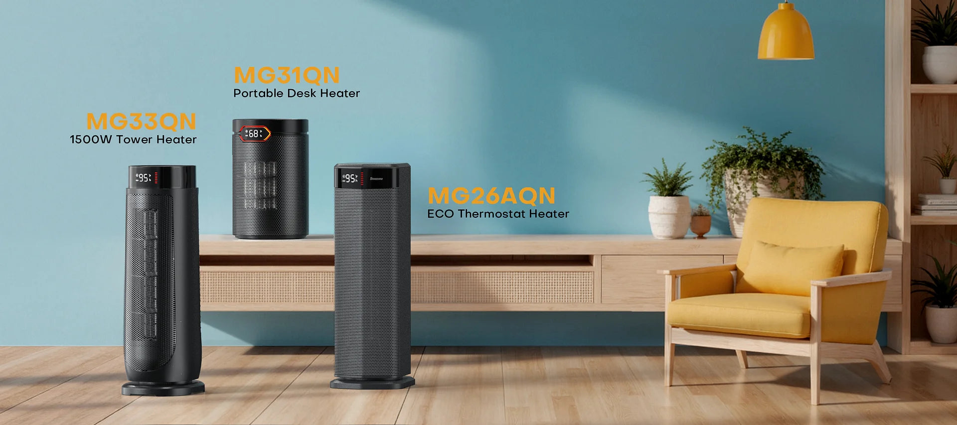 BREEZOME Space Heater MG26QN for Indoor Use, 1500W Fast Heating Electric Heater with Thermostat, 90°Oscillating PTC Ceramic Heater with Remote, 24H Timer Portable Room Heater for Home Office Bedroom Black
